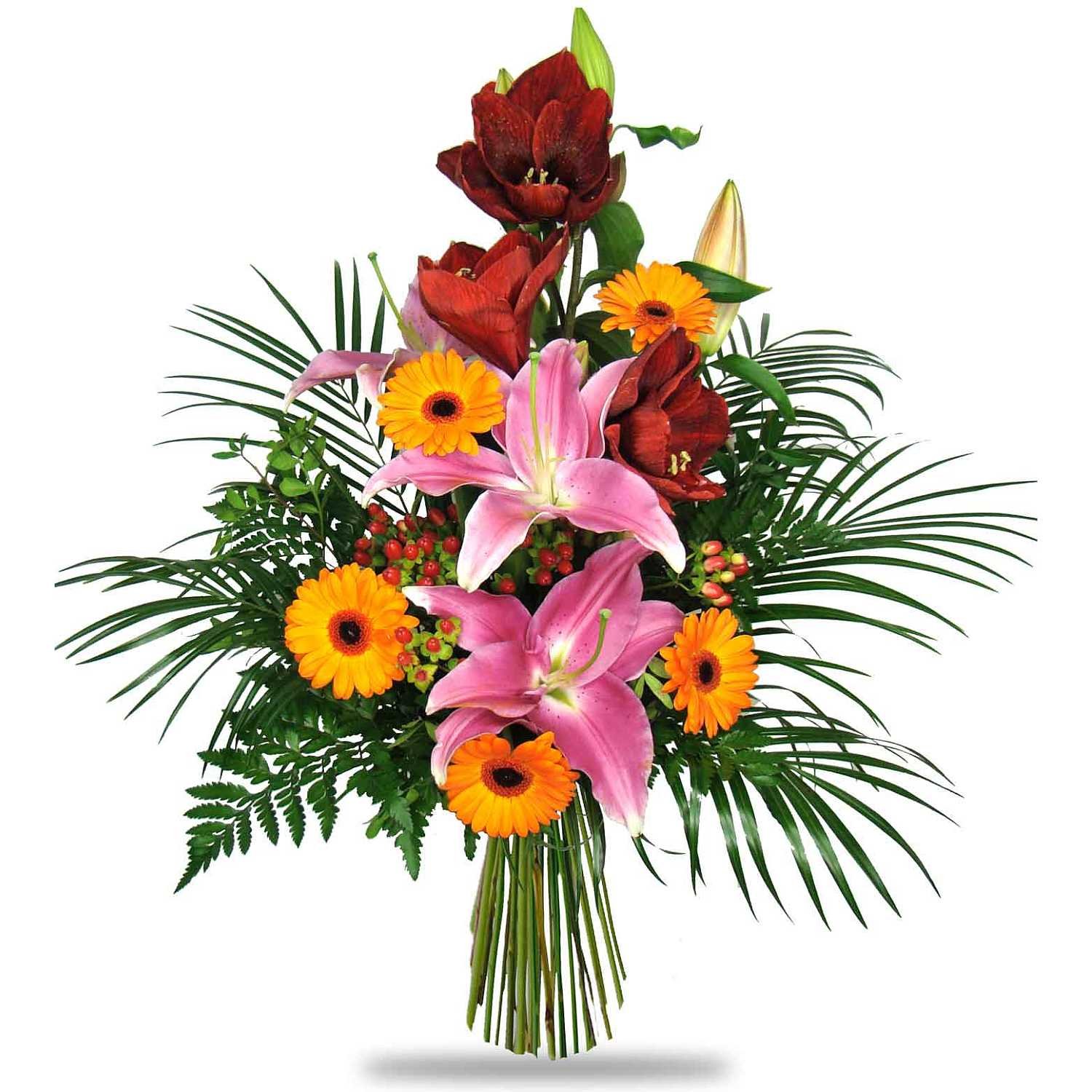 Standard Amarillos, Stargazer Lilies, Hypericum, Mini Gerberas & Decorative greenery (7 stems)