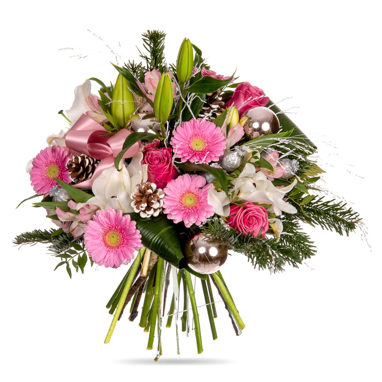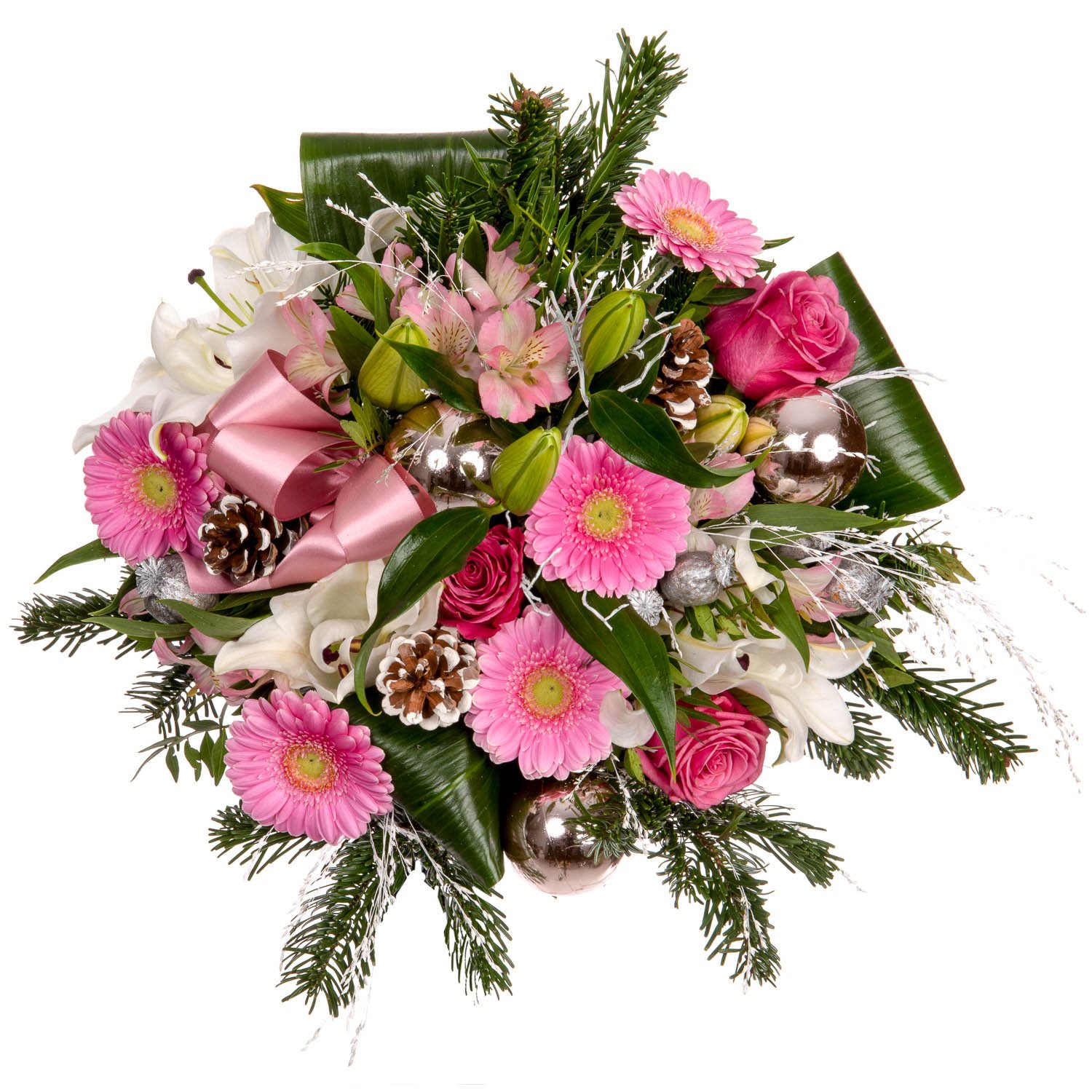 Stargazer Lilies, Mini Gerberas, Roses, Alstroemerias & Decorative greenery (13 stems)